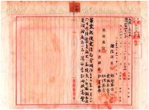 總督府屬熊谷直孝、同河崎維孝苗栗郵便電信局燒失ニ付出張復命