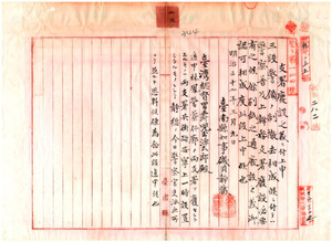 二三 弁務支署廃設林鳳営・寮仔廍弁務支署廃止、噍吧■(口+年)・中埔・梅仔坑・六甲・阿里港・万丹・内埔弁務支署新設ニ付台南県ヘ指令
