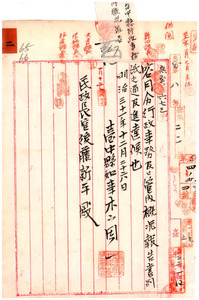二 台中県 明治三一年一一月中(1899/01/12);二-一 台中県 明治三一年一二月中(1899/03/06)二-二 台中県 明治三二年自一月至三月中(1899/06/16);二-三 台中県 明治三二年自四月至六月中(1899/08/05);二-四 台中県 明治三二年自七月至九月中(1899/11/04)