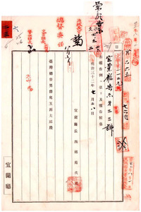 六 告示第二十三号 宜蘭弁務署頭囲支署ノ下大渓派出所ヲ頭囲堡大里簡庄ニ移シ大里簡警察官吏派出所ト改称