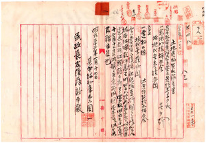 二ノ1 台北城内会所委員長賀田金三郎市区改正ニ関スル建議(1898/05/16);二 台中県後壠租税検査所用トシテ土地建物買収(1899/01/21)