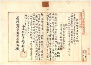 佐佐木紀綱安平港埋立願、同上臺南縣進達、同上ニ付照會、同上ニ付回答、同上ニ付指令、同上ニ關スル命令書案認可、同上埋立許可地返納