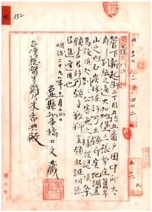 七 鉱第百十号三張犂庄炭鉱採掘願田中卯太郎ヘ許可同鉱区ヲ船山午三ヘ増区・譲渡許可、更ニ陳能記ヘ鉱第百十号譲渡許可、鉱第二百四十八号石炭採掘願業主尾崎幾三郎ヘ許可、鉱第二百五十号石炭採掘願川喜多三朔・李玉如ヘ許可及陳能記鉱第百一号増区願許可