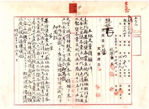 二二 土地丈量ノ義ニ付請願 基隆堡各業主総代区長蘇林曜外・朱廷燦・笵元成・頼火輪・陳母・張三勇・黄朝候・劉新富・陳青・何祈恩・呂九及金包里堡各業主総代区長呉志清・許元慶・蔡容・郭土・陳水連・郭紅九・陳清富・簡宗麟・簡富卿・李*豊・李同居・蔡九重並二三貂堡各業主総代呉日春・周歩蟾・石豊年・連其馨・陳老嬰・林旺樺・呉文理・呉晋禄・䔥芳・林金徳・呉祐頭・潘金山・䔥専・邱振益・揚廷章・謝阿九・呉三朋・林䔥香