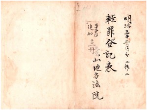 一 明治三二年分(六月途中~一二月) 軽罪登記表台北地方法院(二括ノ二) 七五六枚