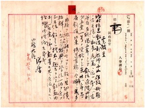 四 臨時台湾鉄道敷設部小山保政叙位叙勲ノ儀上奏ニ関スル件 内務大臣西郷従道宛
