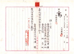 四二 総督府技師長尾半平台北市区計画委員ニ命シ、台北県弁務署長与倉東雄・台北県技師牧彦七ヲ同委員ニ命シ、総督府技師高津慎台北市区計画委員ヲ免ス