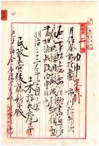 一二 元台南県撲仔脚弁務署雇市川弥惣次総督府雇ヲ命シ土木課勤務ヲ命ス (1899/04/19);一二-1 ツダ及ナガタニ関スル台湾総督府秘書官宛明治三二年四月一八日午後五時一三分台中局発台中県知事木下周一電報(1899/04/18)