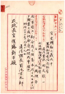 四三 基隆郵便電信局勤務通信書記田尻敬一水返脚郵便電信局ヘ、水返脚郵便電信局勤務通信書記丸岡理平台南郵便電信局ヘ転勤