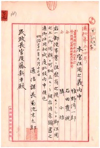 四九 総督府雇姫野淳一郎・石田豊視・隣小坊通信書記二任シ台南郵便電信局勤務ヲ命ス