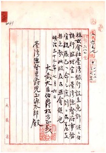 六四 株式会社台湾銀行監理官ヲ総督府事務官祝辰己ニ命スルノ件差支ナキ旨大蔵大臣松方正義ニ解答