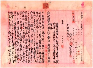 一一 清国切手ヲ貼用スル郵便物処理方ノ件 三一年訓令三三二号、三三年訓令二五二号 (1898/10/04~1900/09/08);一一-1 清国切手胃貼付郵便物無税トシテ配達方ニ付清国郵便局長ヘ回答 (1900/10/18)