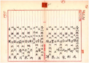 四二 土地調査事業ニ関シ陳文遠・陳瑞彩・余成家・王清江・葉来・陳漂・郭蕃薯・鄭冬雨・曽水来・蘇慶月・翁文義・黄生・黄丁蘭・黄進徳・葉求・李文炎・周火生・周福虎・廖新田・王式金・郭樹林・余半貴・蔡火生・林水秀・顔勵・王太陽・桐文理・廖生・顔正春・謝進伝・蘇維仁・廖安燦・蘇屋・林金漂・林含英・胡万合・黄先振・胡太旺・林臺・楊光興・潘頴悟・戦水井・呉光ヘ賞詞