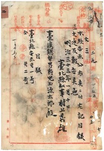 明治三十三年台北縣告示第二號農事試驗場飼養ノ雜種牛炭疽病ニテ斃死