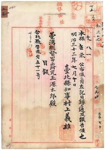 臺北縣告示第五十一號石川縣告示及訓令(小學校教員退隱料等ノ件)