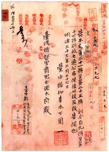 明治三十三年臺中縣訓令第九號現金前渡官吏ノ帳簿第一號樣式備考中削除