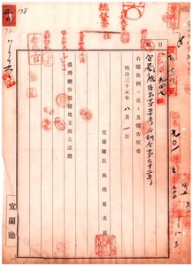 宜蘭廳訓令第六十二號學校職員退隱及遺族扶助料法納金報告書樣式