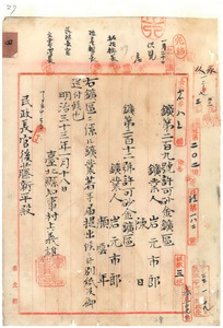 四 鉱第二百九号岩本市郎及陳日、鉱第二百十二号岩本市郎・顔雲年鉱業着手届