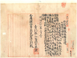 石碇堡八堵庄山本新助外一名石炭採掘願許可(鑛第二七二號)