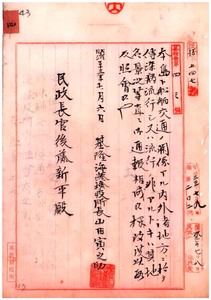 四 船舶交通ノ関係アル北海道・京都・大阪・神奈川・兵庫・長崎・新潟・千葉・茨城・栃木・奈良・三重・愛知・静岡・滋賀・岐阜・宮城・沖縄・岩手・青森・山形・秋田・福井・石川・富山・鳥取・岡山・広島・山口・若山・徳島・香川・愛媛・高知・福岡・大分・佐賀・熊本・宮崎・鹿児島等ノ府県ヘ伝染病発生ノ際基隆漁港検疫所ヘ通報方照会(1900/07/13);四-一 伝染病発生ノ際基隆海港検疫所ヘ通報方照会ニ付キ愛知県知事沖宇固ヨリ回答 (1900/08/01)