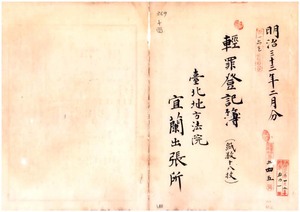 明治三十三年二月分輕罪登記簿(台北地方法院宜蘭出張所)