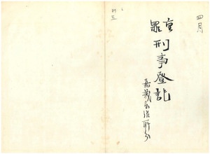 五 明治三三年四月分 重罪登記 覆審法院 台北地方法院 五枚 覆審法院 台北地方法院新竹出張所 一枚 覆審法院 台中地方法院 四枚 覆審法院 台南地方法院 六枚 覆審法院 台南地方法院嘉義出張所 一枚