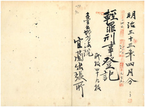 明治三十三年四月分輕罪刑事登記(台北地方法院宜蘭出張所)