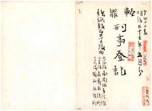 明治三十三年五月分輕罪刑事登記(台南地方法院、同院嘉義出張所、同院鳳山出張所)
