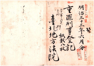 明治三十三年六月分重罪刑事登記(台北地方法院)