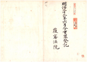 明治三十三年六月分重罪登記(覆審法院台北地方法院、台中地方法院、台南地方法院)