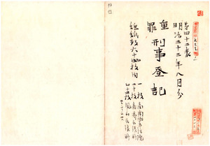 明治三十三年八月分重罪刑事登記(台南地方法院、同院嘉義出張所、同院鳳山出張所)