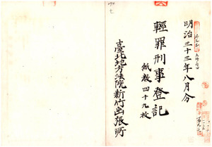 明治三十三年八月分輕罪刑事登記(台北地方法院新竹出張所)
