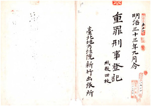 明治三十三年九月分重罪刑事登記(台北地方法院新竹出張所)
