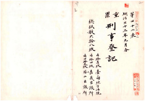 五 明治三三年九月分 重罪刑事登記 台南地方法院 一一枚 台南地方法院嘉義出張所 一四枚 台南地方法院鳳山出張所 四三枚