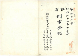 九 明治三三年一〇月分 軽罪刑事登記 台中地方法院 七三枚