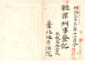 明治三十三年十一月分輕罪刑事登記(台北地方法院宜蘭出張所、台中地方法院)