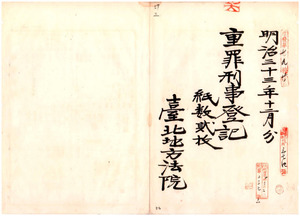 三 明治三三年一二月分 重罪刑事登記 台北地方法院宜蘭出張所 二枚