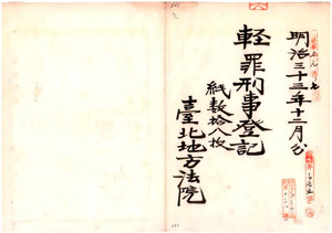 九 明治三三年一二月分 軽罪刑事登記 台北地方法院宜蘭出張所 一八枚一〇 明治三三年一二月分 軽罪刑事登記 台中地方法院 七七枚