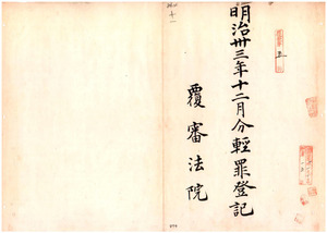 一一 明治三三年一二月分 軽罪登記 覆審法院 台北地方法院 一四枚 覆審法院 台北地方法院新竹出張所 一枚 覆審法院 台中地方法院 二枚