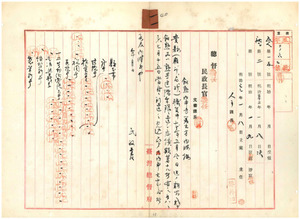 一一 台中県知事木下周一、総督府技師大沢正業、総督府事務官峡謙斉、台南県弁務署長丹野英清ノ位階進級及事務官柳本通義、法院判官川上和一、二等郵便電信局長毛受真一郎、総督府属杉浦義徳、台中県警部松本恭輔叙位ノ件 内務大臣宛