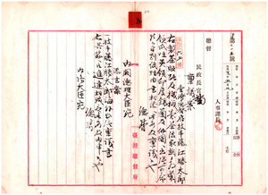 五 民政局技手藤江勝太郎仏国巴里大博覧会製茶出品監督・製茶販路拡張・機械製茶法取調ノ為出張ノ件 総理大臣山県有朋ヘ稟議及ヒ内務大臣西郷従道へ内申