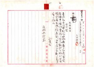 一〇 台北県書記官松岡弁兵庫県参事官在職中条約実施ニ関スル勤労ニ対シ賞与ニ関スル件 内務秘書官水野錬太郎ヨリ通牒