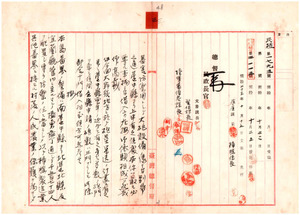 三 防蕃用大鵬設備并返礼等ノ件 内務省総務長官大森鍾一、台北陸軍兵器本廠長木村起善・台北県知事村上義雄・台中県知事木下周一
