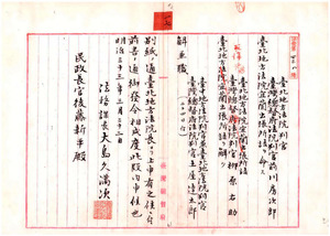 一七 台北地方法院判官前川房次郎台北地方法院宜蘭出張所詰ヲ命シ台中地方法院判官兼台北地方法院判官土屋達太郎兼職ヲ解ク