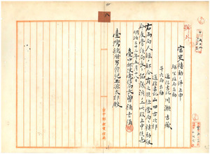 八 埔里社郵便電信局勤務通信書記川瀬吉蔵・斗六郵便電信局勤務通信書記山田吉次郎台中郵便電信局勤務ヲ命ス