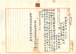 二三 台北電話交換局傭小笠原城次郎台湾総督府通信書記兼総督府電話交換局書記ニ任シ台北郵便電信局兼台北電話交換局勤務ヲ命ス