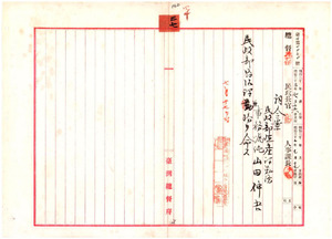 三七 台湾総督府民政部殖産局勤務事務嘱託山田伸吾民政部県治課兼務ヲ命ス