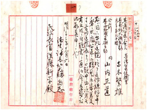 一 台湾公医候補生古木繁雄台湾公医ヲ命シ台南県大湖在勤ヲ、台湾公医候補生山内正道台湾公医ヲ命シ台北県咸菜硼在勤ヲ命ス