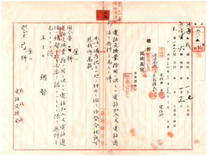 一三 電話交換業務用ニ供スル電話加入及電話通信ヲ無料ト為スノ件 府令第二号・訓令 第六号