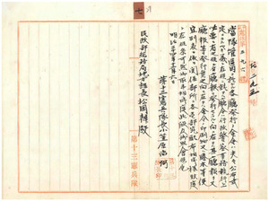 七 第十三憲兵隊本部及ヒ台北憲兵分隊本部・大稲花憲兵屯所・崔崢憲兵屯所・滬尾 憲兵屯所・基隆憲兵分隊本部・頂双渓憲兵屯所・宣蘭憲兵分隊本部・蘇寿憲兵屯所 ・石碇街憲兵派遣所・新竹憲兵分隊本部・大嵙崁憲兵屯所へ台北・基隆・宜蘭・深 坑・新竹・桃仔園各庁令配付方通達